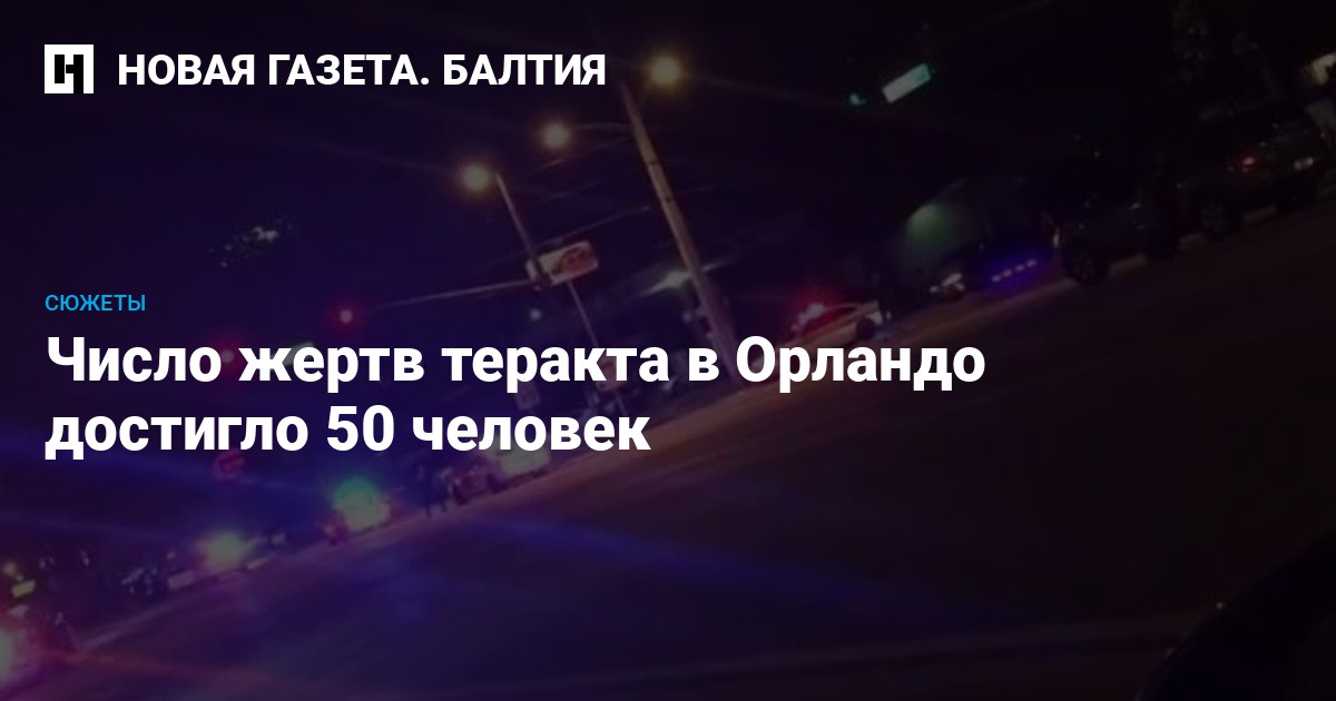 В результате атаки на гей-клуб в Орландо (штат Флорида, США) погибли 50 человек, еще 53 получили ранения, сообщили власти города, передает The Washington Post. Ранеесообщалось о 20 погибших.