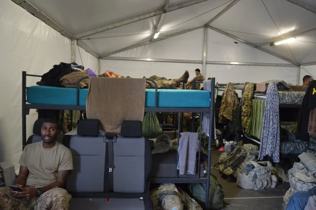 К группе военных присоединяется командир бригады полковник Дэвид Гарднер. Полковника, который умело уклоняется от вопросов про политику, журналистам не очень удается разговорить. «Я военный, безопасность Восточной Европы — это уже область политики. Нашей основной задачей является присутствие силы в регионе и подтверждение нашего участия в процессе и обеспечения безопасности в Европе», — говорит полковник.