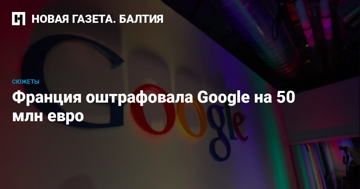 Национальная комиссия по делам информационных технологий и правам человека Франции (CNIL) оштрафовала компанию Google на 50 млн. евро за нарушение закона о персональных данных, говорится на сайте регулятора.