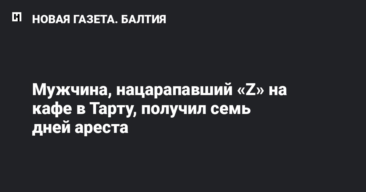38-летний Сергей Милов нацарапал на стене кафе «Riffen» в Тарту символ «Z» и лозунг «Слава России». Тартуский уездный суд признал его виновным и приговорил к семи суткам ареста, пишет Postimees.