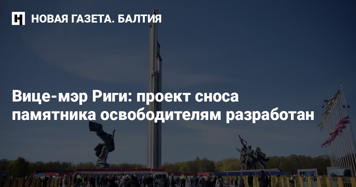 Проект демонтажа памятника освободителям в Риге уже разработан, сейчас мэрия опрашивает строительные компании, которые могут выполнить проект, заявил в передаче Rīta panorāma на Латвийском телевидении вице-мэр Вилнис Кирсис.