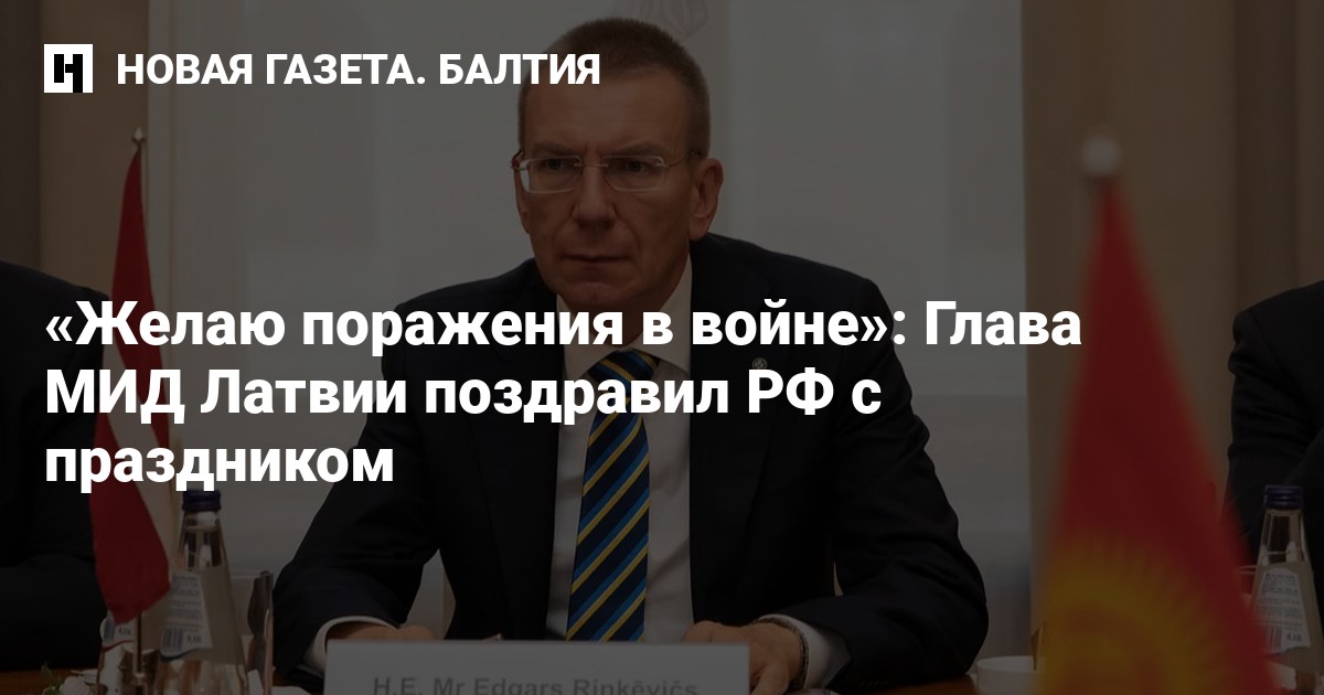 12 июня россияне отмечают государственный праздник День России. По этому случаю министр иностранных дел Латвии Эдгар Ринкевич пожелал РФ поражения в агрессивной войне против Украины.