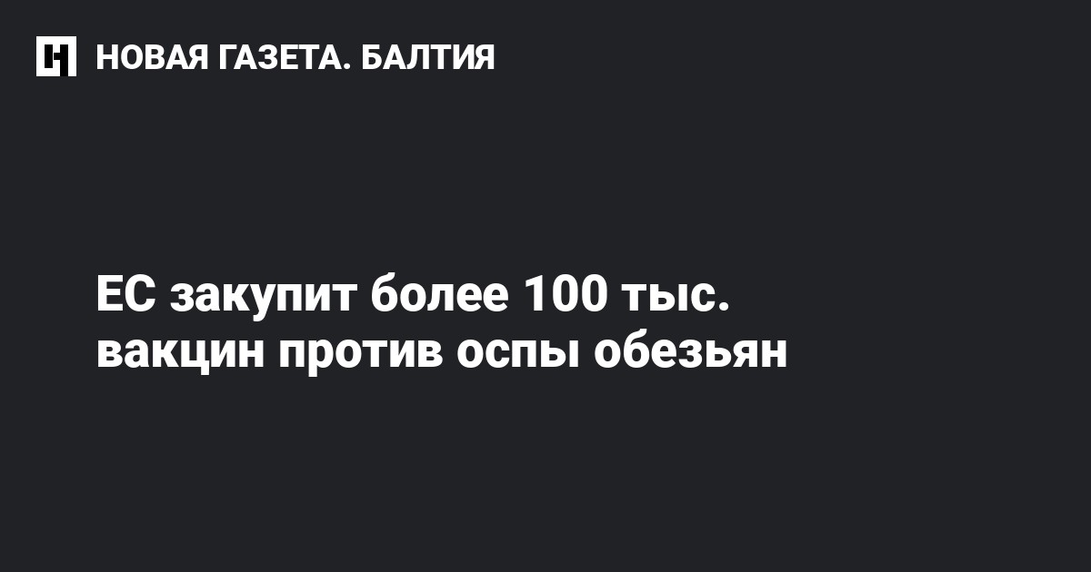 ЕС подписал соглашение с компанией Bavarian Nordic на поставку около 110 тысяч доз вакцины против оспы обезьян, пишет Reuters.