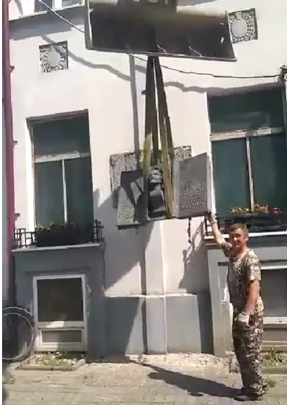 В Советске демонтировали мемориальную доску литовскому философу Видунасу. Видео в своих соцсетях опубликовал глава горадминистрации Евгений Макаров.