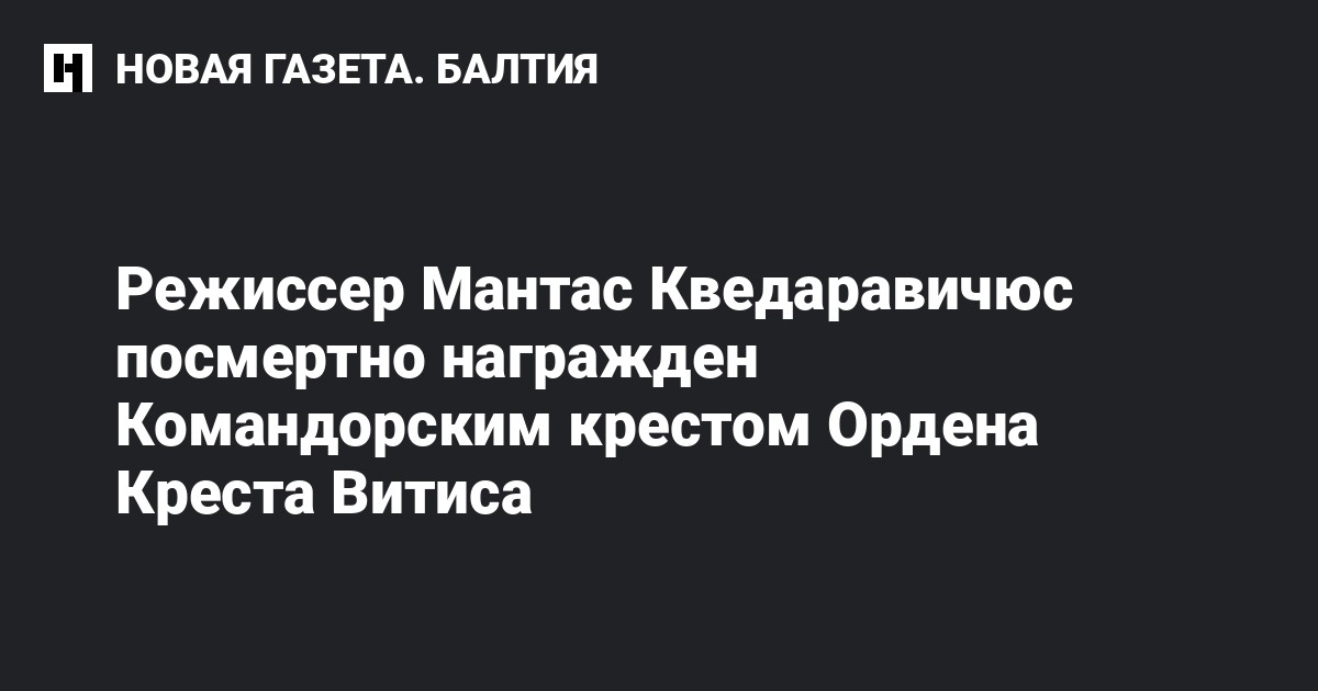 Президент Литвы Гитанас Науседа посмертно наградил режиссера Мантаса Кведаравичюса Командорским большим крестом Ордена Креста Витиса. Награду вручили родителям режиссера, который весной был убит в Мариуполе.