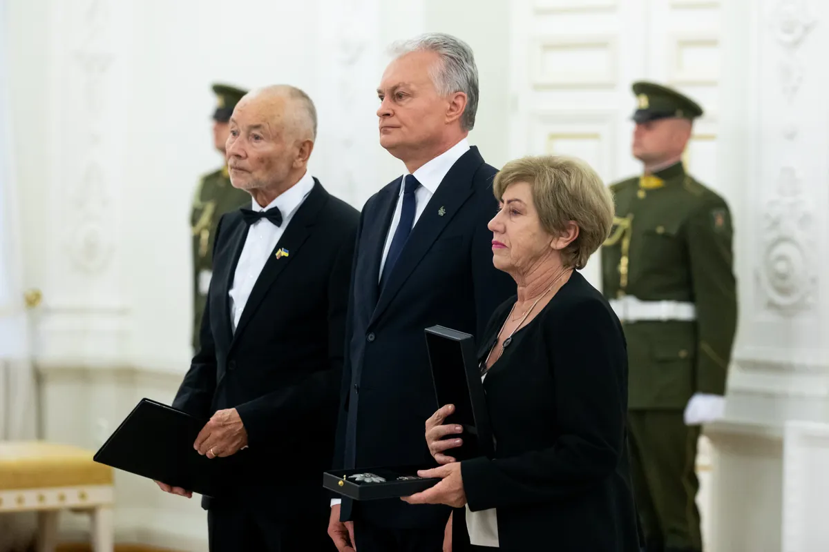 Родители Мантаса Кведаравичюса с наградой. Фото: BNS