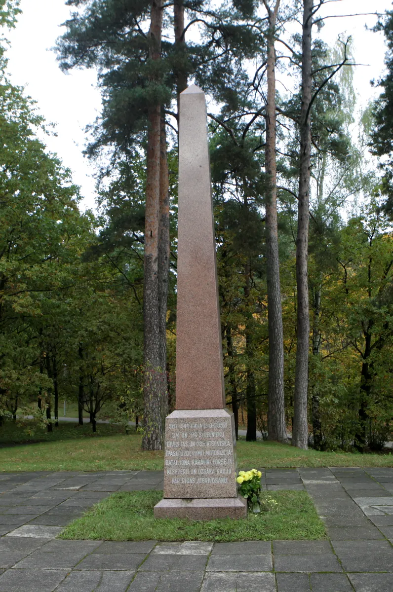 В Межапарке, на берегу озера Кишезер, в 1950 году установлен обелиск 374-й стрелковой дивизии Красной Армии. Это четырехметровый гранитный обелиск четырехгранной формы. Другой объект находится на улице Яунциема возле 7-го перекрестка. Это табличка, вмонтированная в валун, с текстом на латышском и русском языках. Памятный камень размещен на месте наступления советской армии.