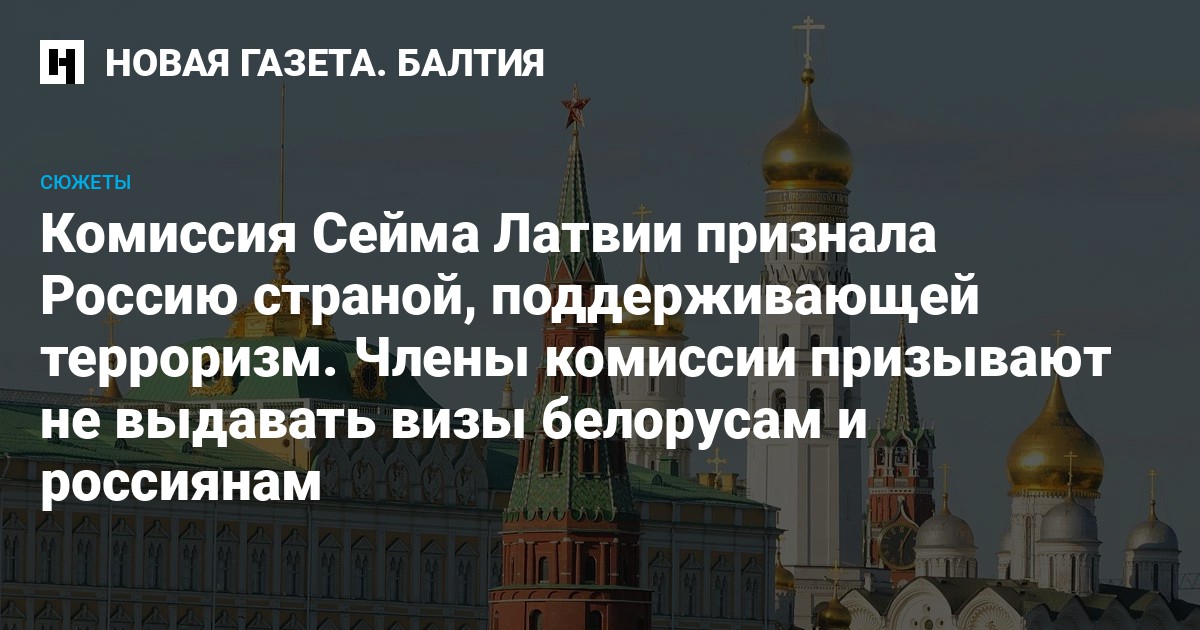 Комиссия Сейма Латвии по иностранным делам признала Россию государством, поддерживающим терроризм. Заявление направят на ближайшее заседание депутатов Сейма.
