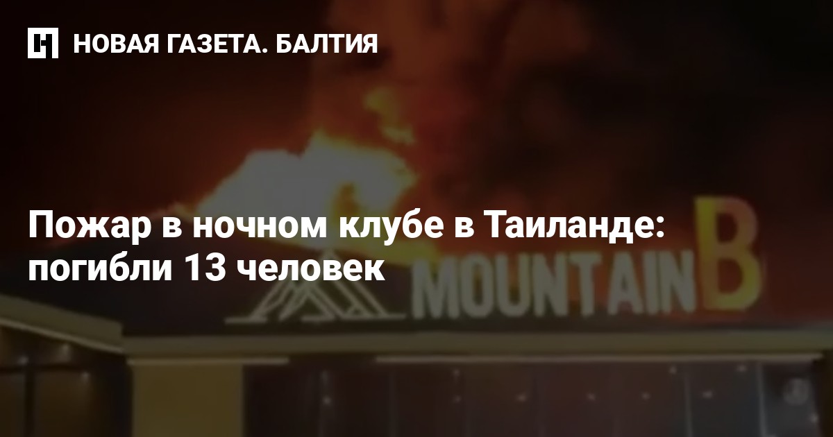 В ночном клубе Mountain в провинции Чонбури произошел пожар, в результате которого погибли по меньшей мере 13 человек, еще 35 получили ранения, сообщает Reuters со ссылкой на полицию.