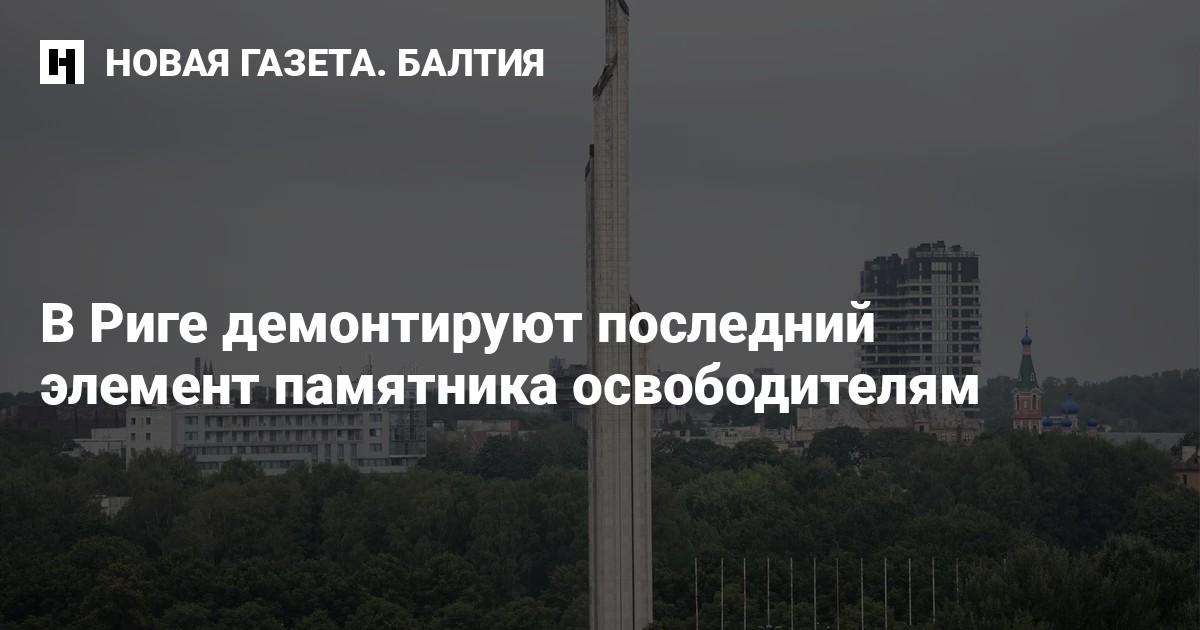 В парке Победы в Риге начинается демонтаж последнего элемента памятника освободителям — 79-метровой стелы, увенчанной звездами, передает LETA.