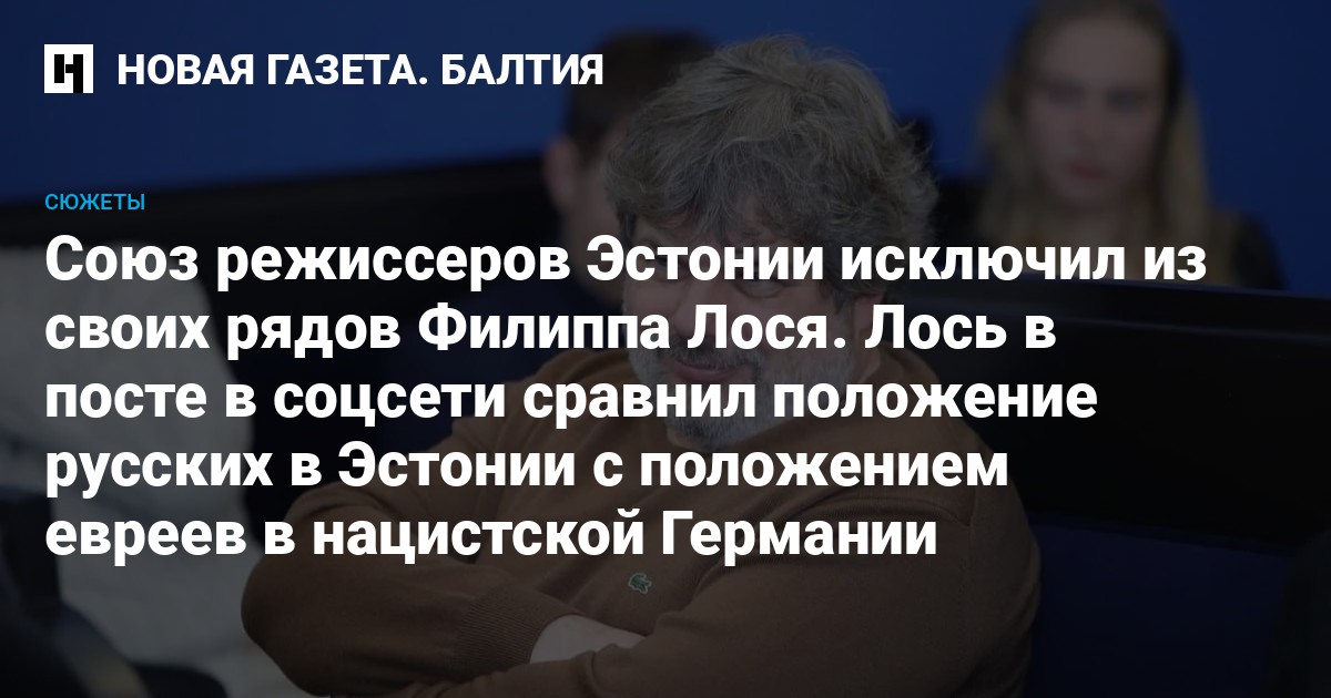 Правление Союза режиссёров и драматургов Эстонии решило исключить из своих рядов режиссера Русского театра Филиппа Лося. Решение связано с постом в соцсети Facebook, где Лось сравнил положение русских в Эстонии с положением евреев в нацистской Германии.