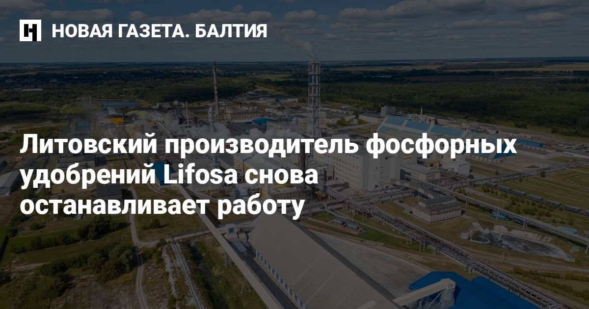 Литовский производитель фосфорных удобрений Lifosa опять приостанавливает свою деятельность. Компания возобновила работу в августе после перерыва в несколько месяцев, который был вызван подорожанием природного газа. В этот раз Lifosa останавливается из-за нехватки аммиака, передает 15min.lt.