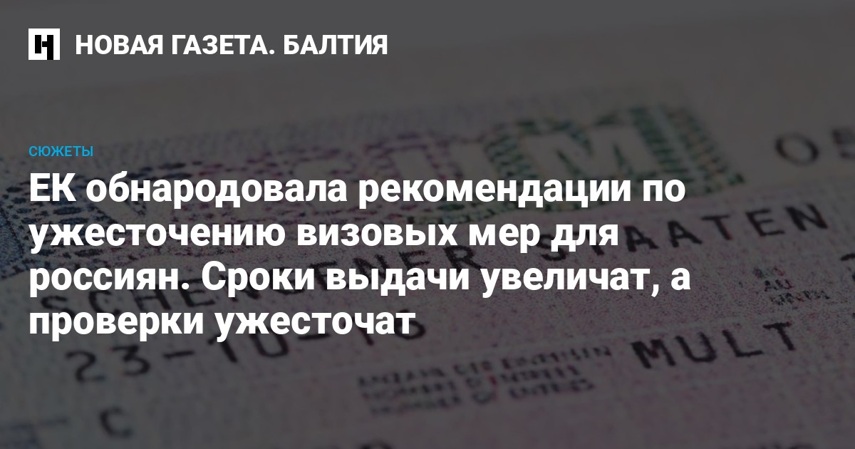 Европейская комиссия обнародовала рекомендации по ужесточению визового режима для россиян. Необходимость ужесточения в документе обосновывается рисками для безопасности, с которыми сталкивается ЕС в условиях «агрессивной войны России против Украины».
