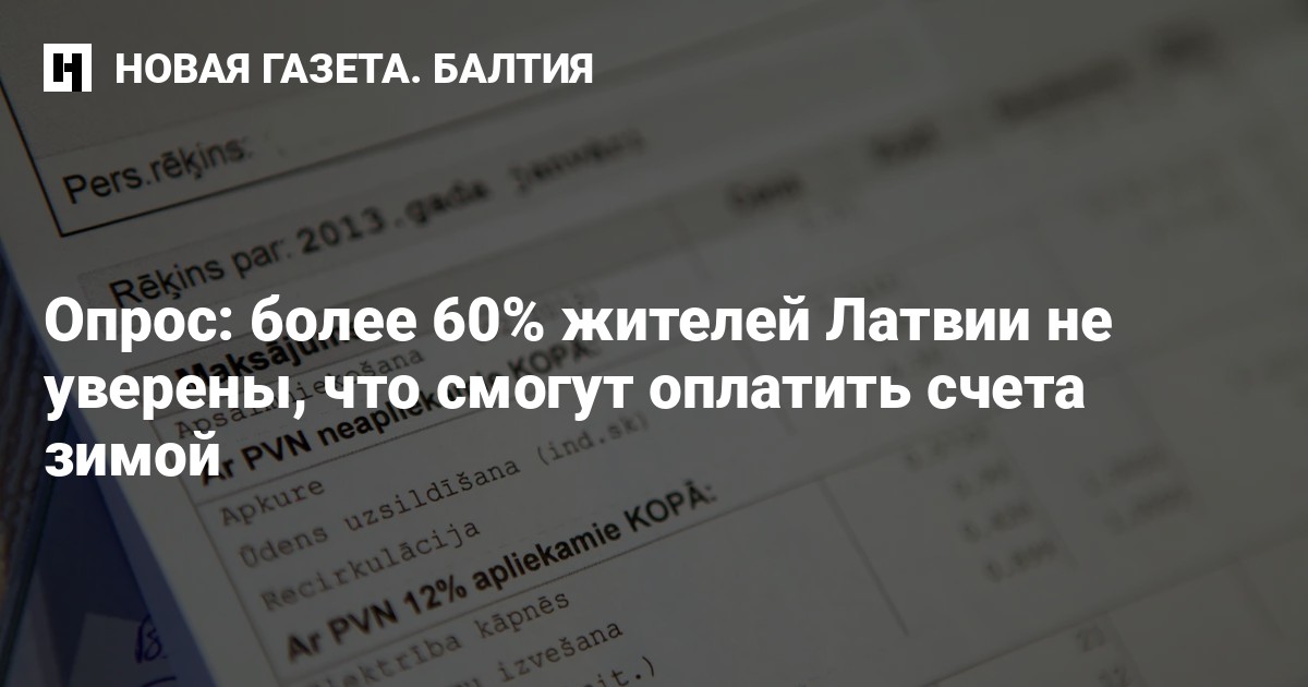 63% жителей Латвии сомневаются, что смогут оплачивать коммунальные счета зимой, показал опрос, проведенный Swedbank. 37% опрошенных уверены, что справятся со счетами в наступающем отопительном сезоне.