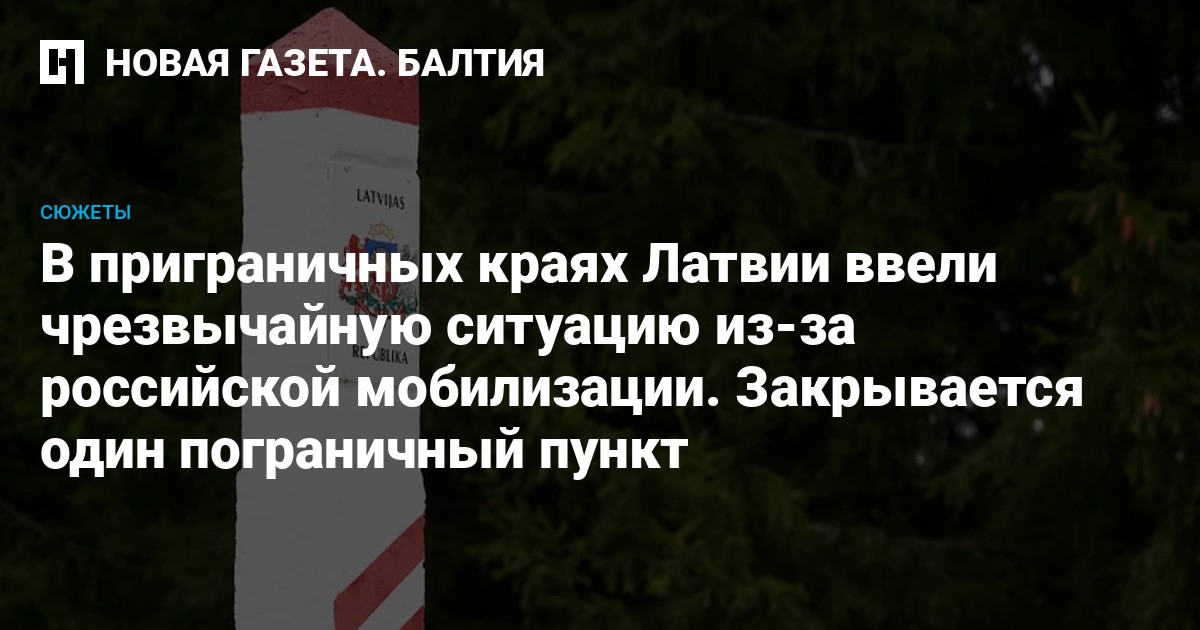 Правительство Латвии объявило режим чрезвычайной ситуации в краях, граничащих с Россией. Решение принято из-за объявленной в России частичной мобилизации: власти опасаются роста нелегальной миграции россиян в Латвию.