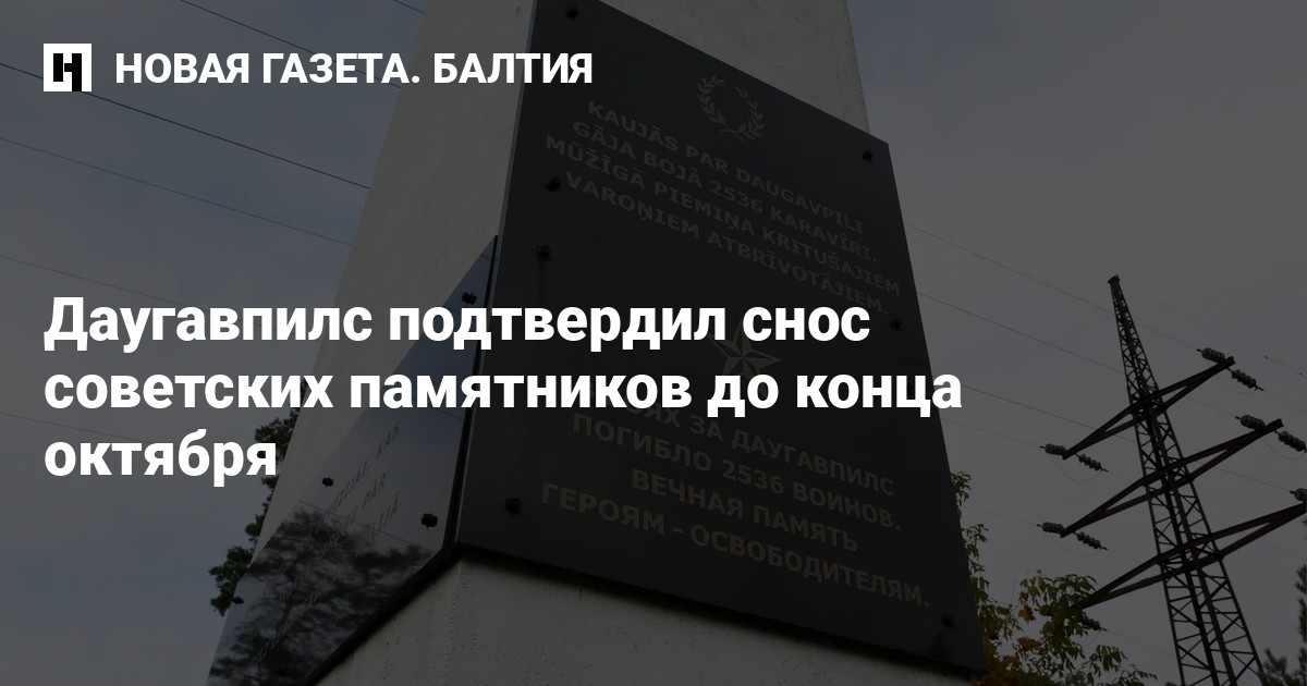 Советские памятники в Даугавпилсе будут снесены до конца октября. Официальную информацию об этом получило министерство охраны окружающей среды и регионального развития, сообщает Delfi.
