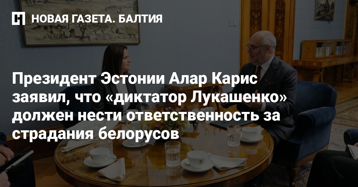 Эстония продолжит поддерживать демократические устремления Беларуси, а диктатор Александр Лукашенко должен взять ответственность за страдания белорусского народа. Об этом на встрече с экс-кандидатом в президенты Беларуси Светланой Тихановской заявил эстонский лидер Алар Карис.