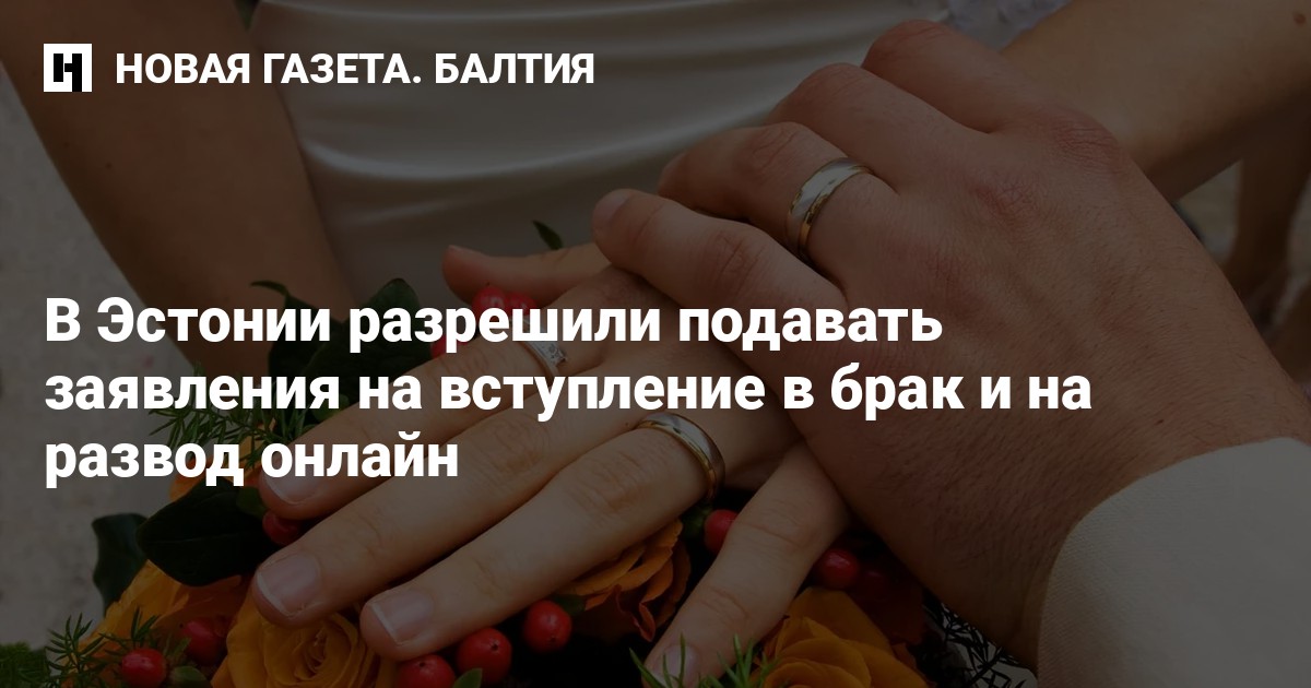 Парламент Эстонии принял закон, разрешающий подавать заявления на вступление в брак и на развод электронно. Подать заявление на вступление в брак онлайн можно будет с 30 декабря этого года, на развод — с 1 декабря 2024 года.