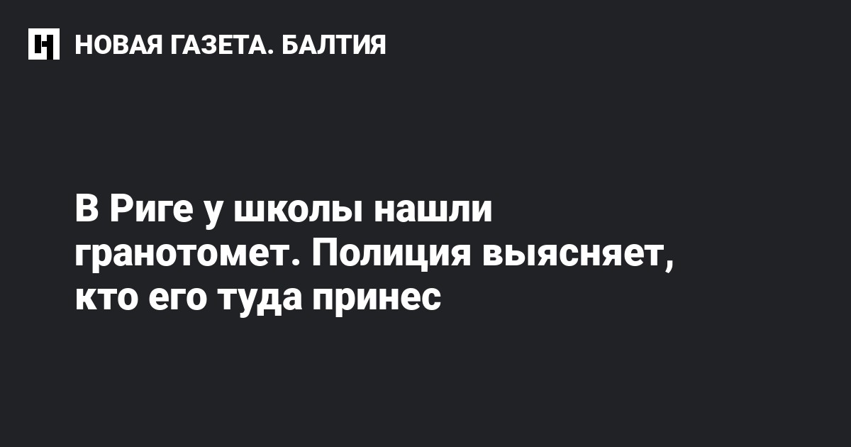 У школы в рижском районе Пурвциемс прохожий обнаружил гранатомет, сообщает Rus.tvnet.lv. Прибывшая на место полиция установила, что в оружии нет снарядов, и увезла гранатомет с места происшествия.