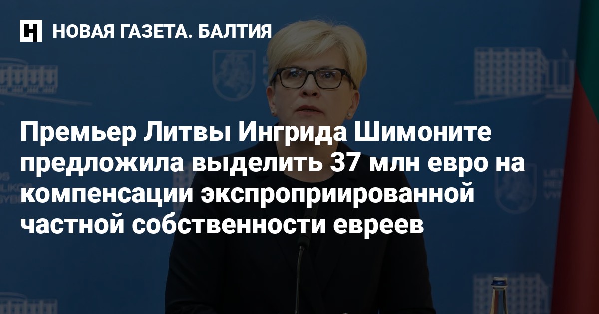 Премьер-министр Литвы Ингрида Шимоните предложила выделить 37 млн евро, чтобы компенсировать экспроприированную в 20 веке частную собственность евреев, передает BNS. Законопроект должны одобрить правительство и Сейм Литвы.