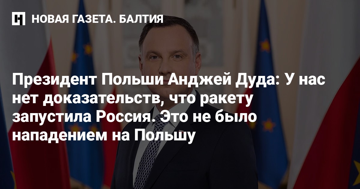 У Польши нет доказательств, что упавшая 15 ноября на территорию страны ракета была запущена Россией, заявил президент Польши Анджей Дуда.