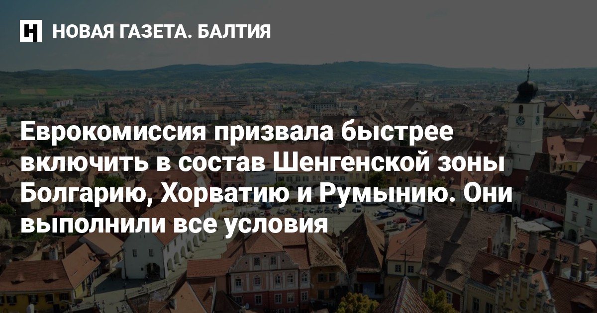 Еврокомиссия призвала Совет ЕС включить в Шенгенское соглашение Болгарию, Румынию и Хорватию, поскольку страны выполнили все условия для присоединения к безвизовому пространству, говорится в заявлении на сайте Еврокомиссии (ЕК).