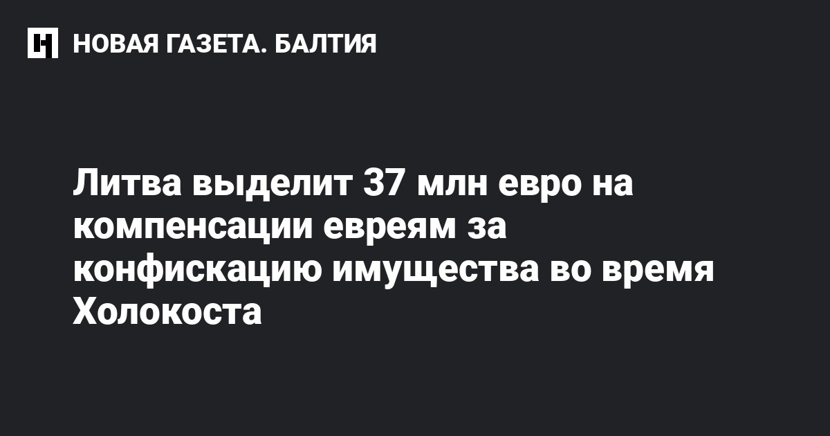 Литовский парламент в первом чтении принял законопроект, предусматривающий выделение 37 млн евро на выплату компенсаций за конфискованное личное имущество евреев в годы Второй мировой войны.