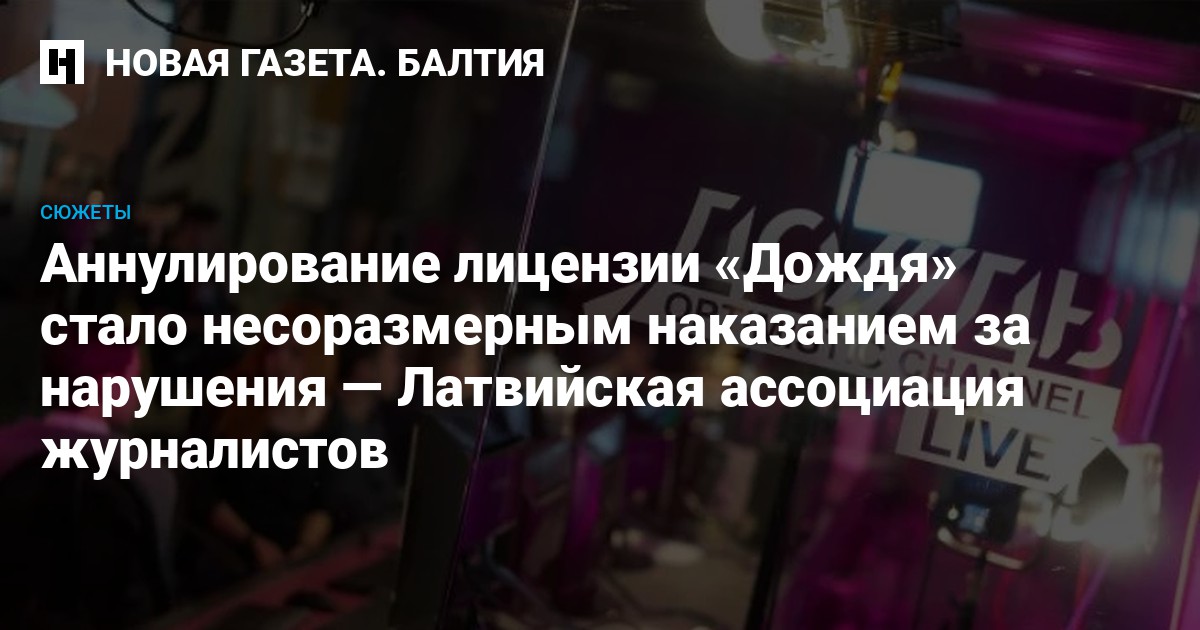 Латвийская ассоциация журналистов (LŽA) считает лишение лицензии телеканала «Дождь» мерой, несоразмерной с допущенными нарушениями. Ассоциация опасается, что дело «Дождя» может стать негативным прецедентом для других СМИ, которые зарегистрированы в Латвии, но вещают на русском языке.