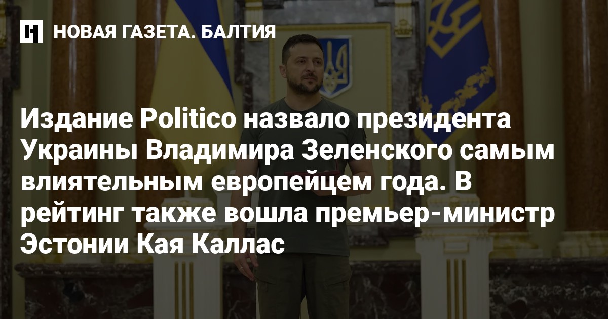 Издание Politico опубликовало рейтинг самых влиятельных людей Европы в 2022 году. На первом месте — президент Украины Владимир Зеленский.