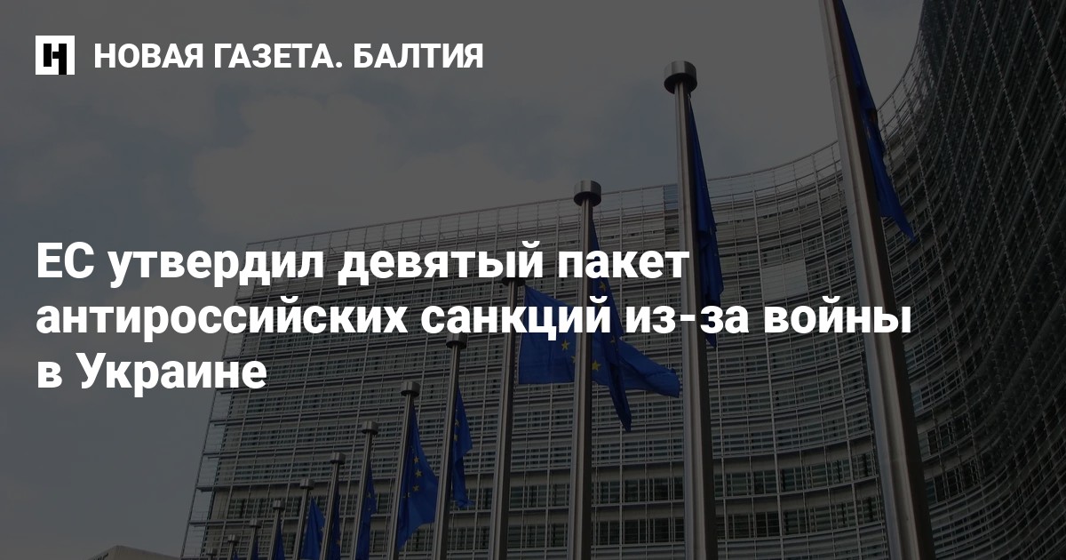 Совет Европейского союза утвердил девятый пакет экономических и индивидуальных санкций в отношении России из-за войны против Украины.