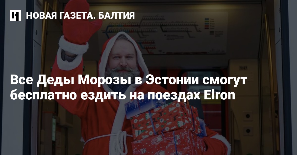 С 23 по 26 декабря все Деды Морозы смогут ездить на поездах Elron бесплатно, сообщается на официальном сайте перевозчика.