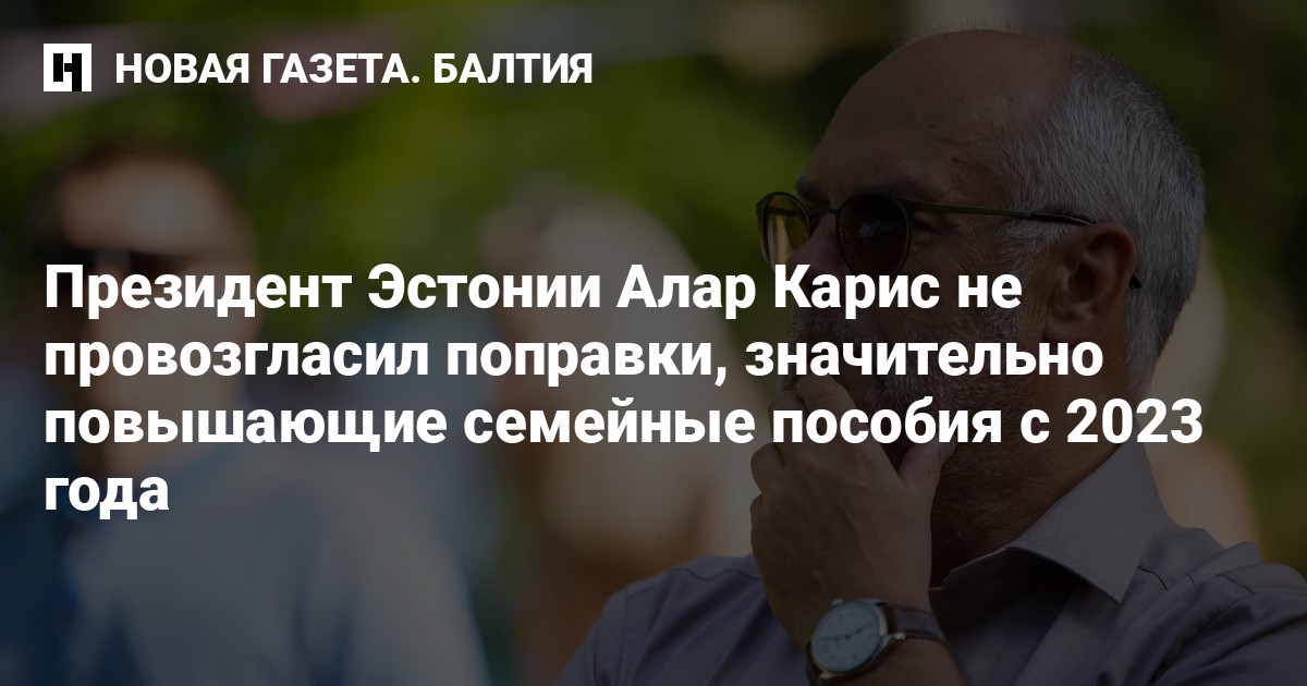 Президент Эстонии Алар Карис не провозгласил поправки, которые значительно повышают семейные пособия с 2023 года. Парламент Эстонии принял эти поправки 7 декабря.