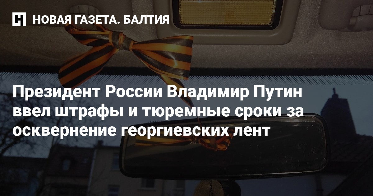 Президент России Владимир Путин подписал закон, который предусматривает штрафы до 5 млн рублей (около 65,6 тысяч евро) или до 5 лет колонии за осквернение георгиевских лент.
