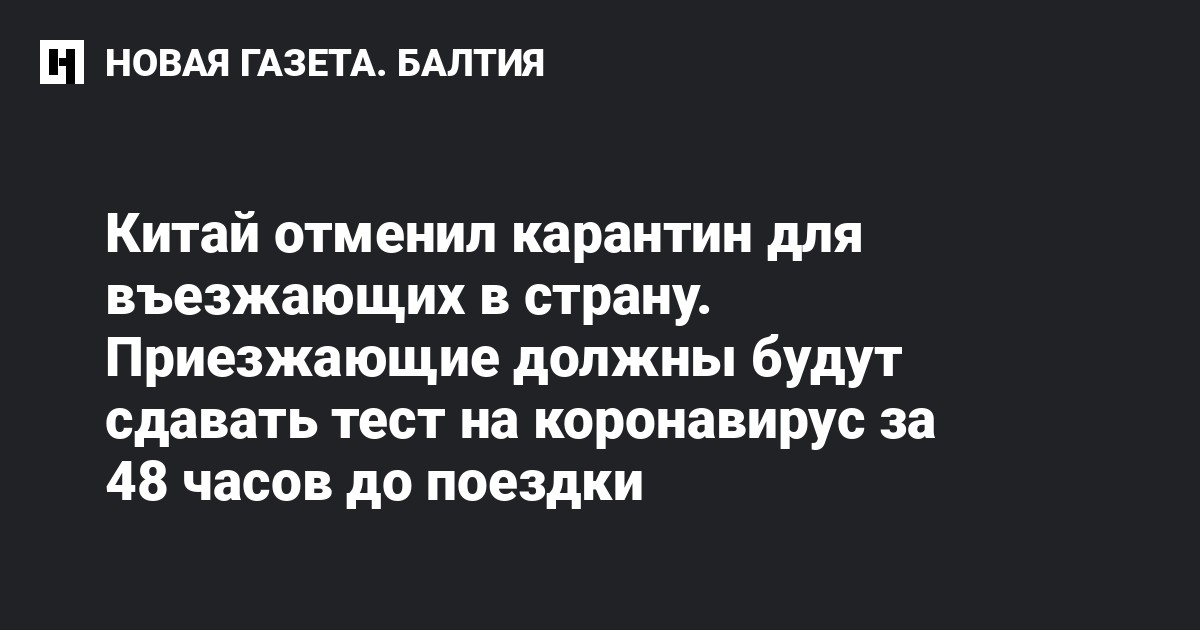 С 8 января Китай отменил обязательный карантин для въезжающих в страну, передает Bloomberg. Приезжающим все еще нужно сдавать тест на коронавирус за 48 часов до поездки.