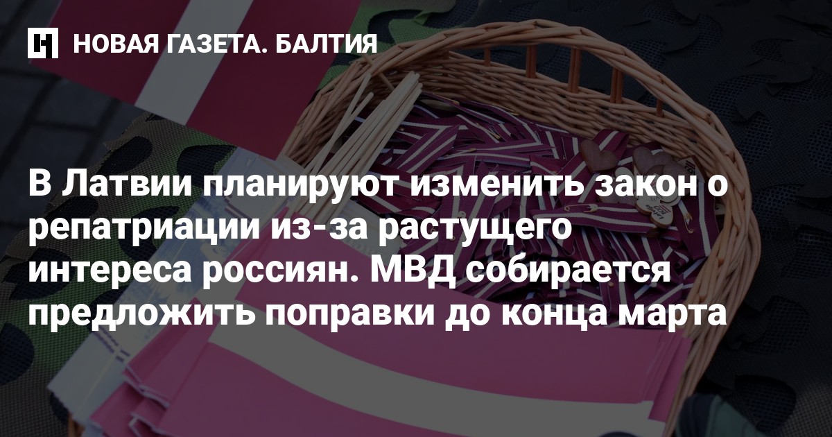 Министерство внутренних дел Латвии собирается подать поправки к закону о репатриации до конца марта. Ожидается, что возможность репатриации сохранится на более жестких условиях. Репатрианты и члены их семей смогут получать временный вид на жительство на пять лет. Чтобы получить постоянный вид на жительство, человек должен будет прожить в Латвии первые 5 лет и сдать латышский язык на категорию А2.