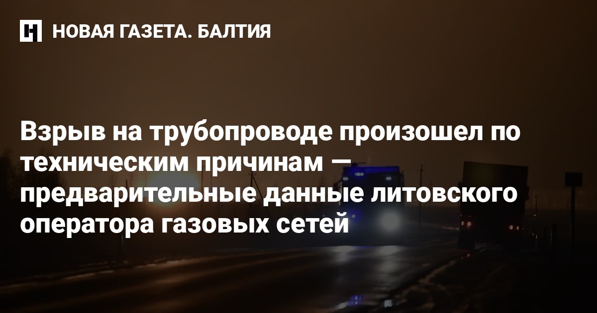 Причиной взрыва на газопроводе в Пасвальском районе Литвы стала техническая неисправность. Об этом сообщил глава литовского оператор газовых сетей Amber Grid Нямунас Бикнюс, передает BNS.