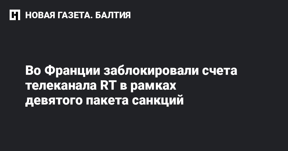 Франция заблокировала счета телеканала RT в рамках девятого пакета санкций против России, передает радио RFI.