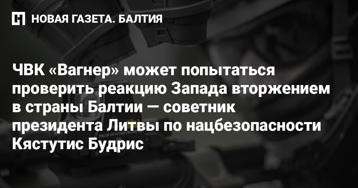 Российское негосударственное вооруженное формирование ЧВК «Вагнер» (частная военная компания — прим. ред.) может попытаться проверить защитные механизмы Запада, вторгнувшись в страны Балтии. Об этом в интервью Delfi заявил главный советник президента Литвы по национальной безопасности Кястутис Будрис.