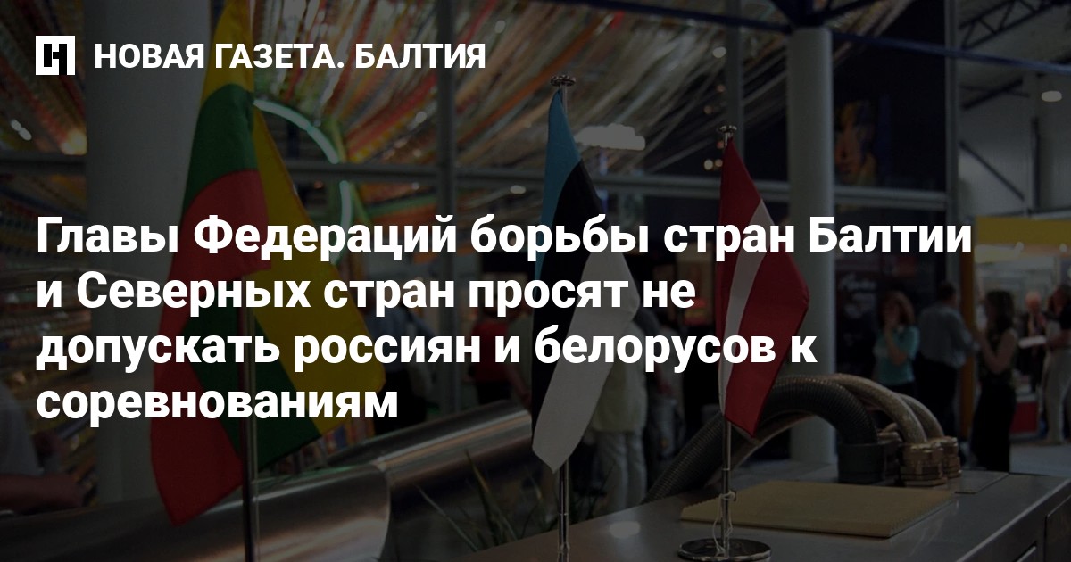 Президенты Федераций борьбы Эстонии, Латвии, Литвы, Финляндии, Норвегии, Швеции и Дании в совместном обращении к президенту Международной федерации борьбы Ненаду Лаловичу попросили не допускать белорусских и российских спортсменов к международным соревнованиям, сообщает Delfi.