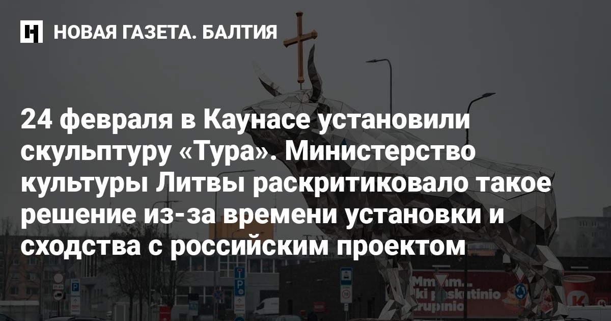 24 февраля в Каунасе установили скульптуру «Тура». Министр культуры Литвы Симонас Кайрис раскритиковал решение местных властей из-за сходства инсталляции с запланированным в России проектом.