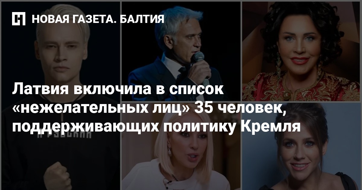 Министр иностранных дел Латвии Эдгар Ринкевич включил в список нежелательных лиц 35 артистов, журналистов, блогеров и общественных деятелей, поддерживающих политику Кремля.