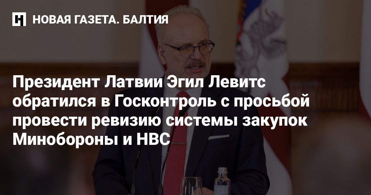 Президент Латвии Эгил Левитс обратился в Государственный контроль с просьбой провести ревизию системы закупок и снабжения Министерства обороны и Национальных вооруженных сил (НВС), пишет Mixnews.lv.