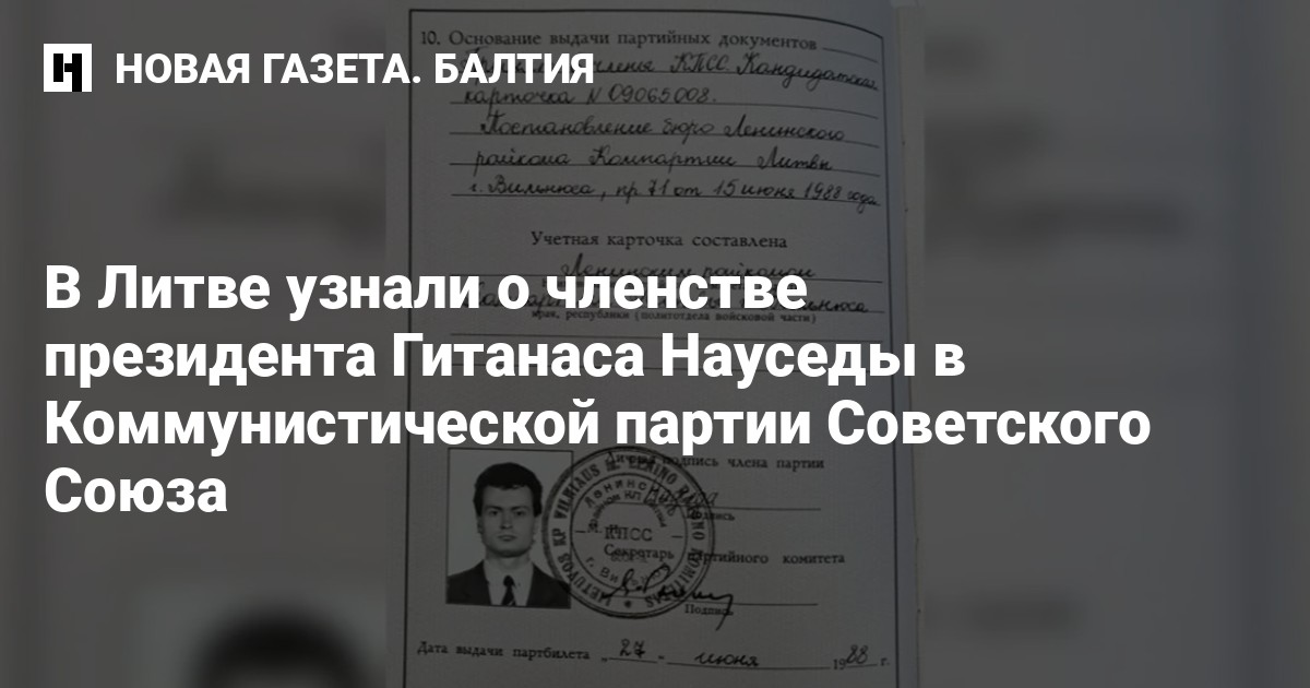 Журналист Довидас Панцеровас поделился документами, согласно которым, в мае 1988 года действующий президент Литвы Гитанас Науседа написал заявление с просьбой принять его в ряды Коммунистической партии Советского Союза. В президентской канцелярии данную информацию подтвердили.