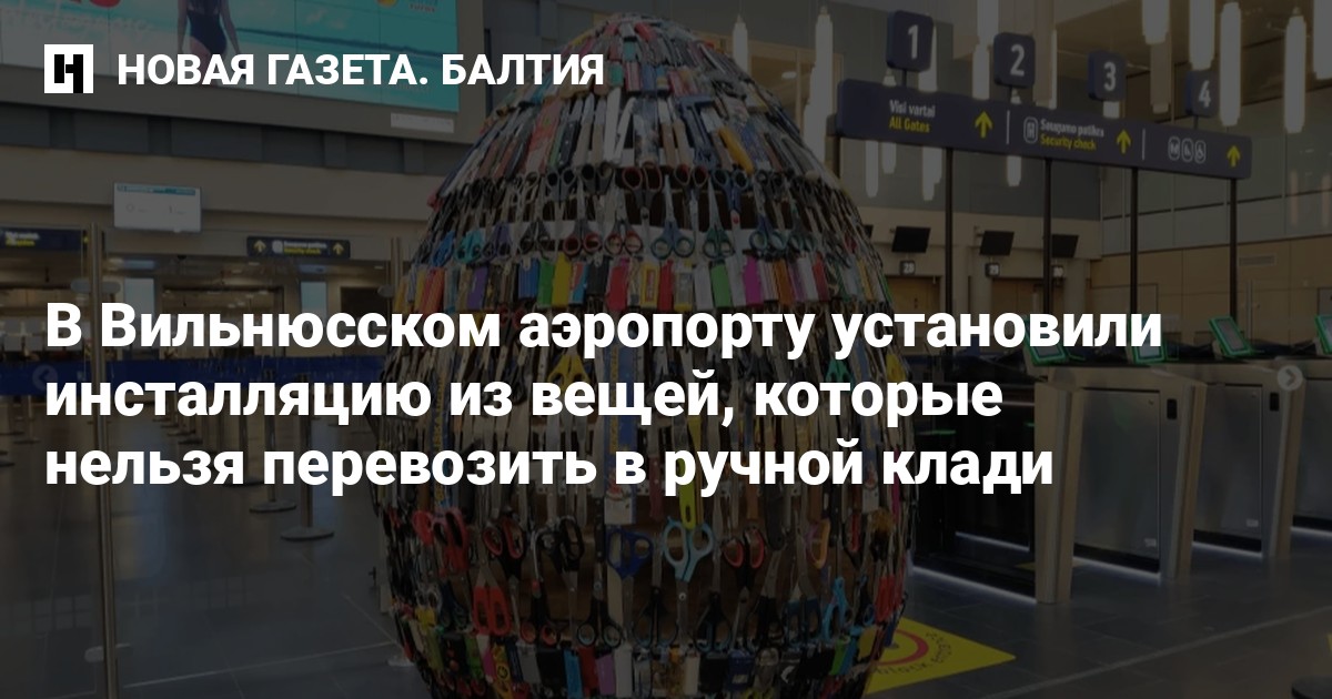 В Вильнюсском аэропорту установили инстанцию в виде яйца, украшенного вещами, которые нельзя перевозить в ручной клади.