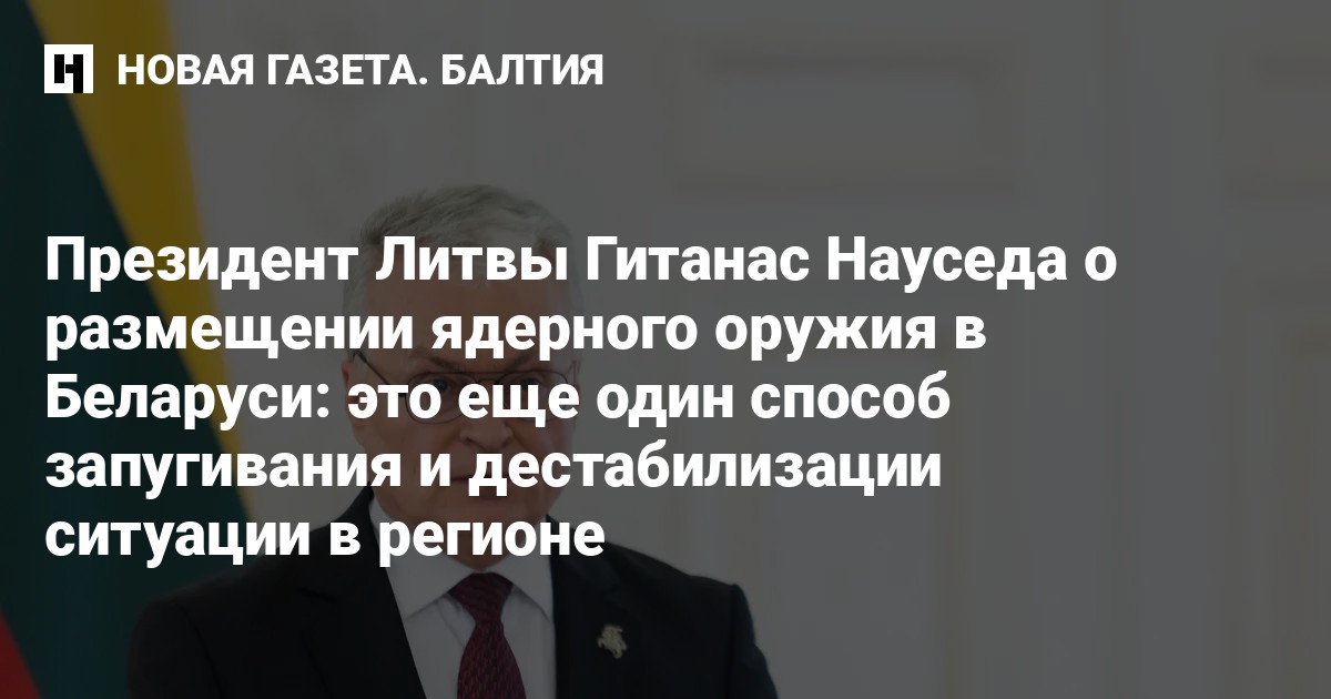 Заявив о намерении разметить ядерное оружие в Беларуси, Россия пытается дестабилизировать ситуацию в регионе. Об этом заявил президент Литвы Гитанас Науседа, пишет Ru.delfi.lt.