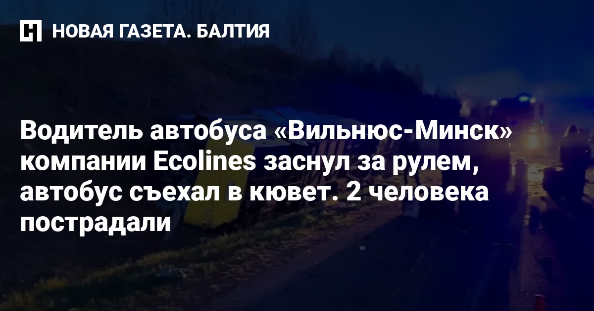 В ночь на 23 апреля автобус компании Ecolines «Вильнюс-Минск» съехал в кювет на трассе Минск-Ошмяны-граница Литвы, передает Zerkalo.