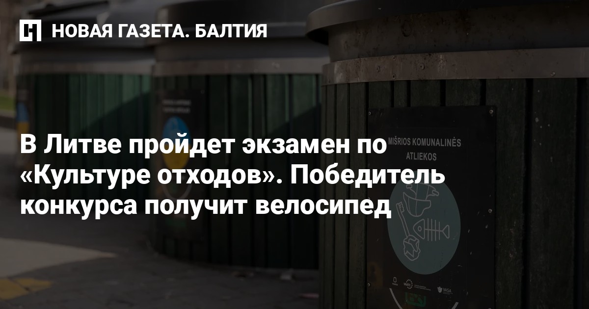 27 апреля в Литве пройдет экзамен по «Культуре отходов». С 9.00 до 20.00 участники смогут пройти тест на сайте конкурса. На экзамен дается 45 минут. По итогам экзамена участники получат дипломы, а победитель в старшей возрастной группе выиграет велосипед.