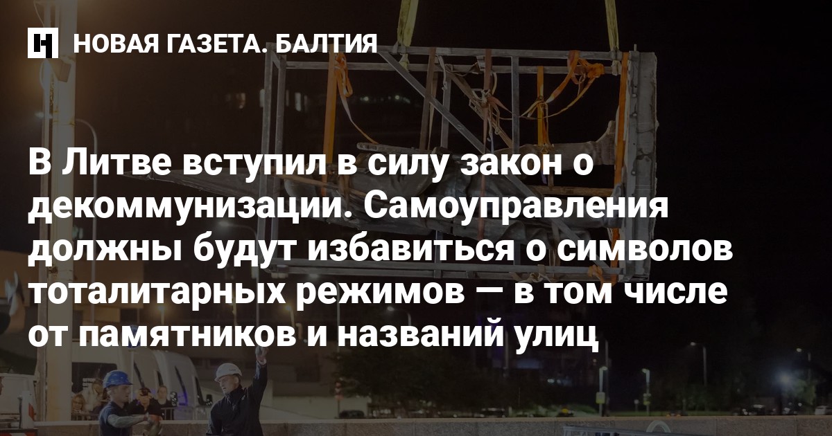 1 мая в Литве вступил в силу запрет на пропаганду тоталитарных и авторитарных режимов. Закон создает порядок удаления из общественного пространства таких символов — памятников, мемориальных объектов, названий улиц и площадей.