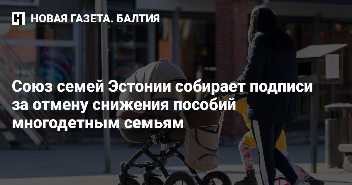 Союз семей призывает Рийгикогу остановить планы по сокращению поддержки многодетных семей и сохранить нынешнюю систему пособий и их индексацию. По оценке организации, сокращение пособий создает «дыру» в как минимум 500 евро для многодетных семей. «Многодетные оказываются в ситуации, когда становится трудно сводить концы с концами, они катятся в нищету. Страдают и дети — неизбежно приходится экономить за счет их нужд», — говорится в петиции.