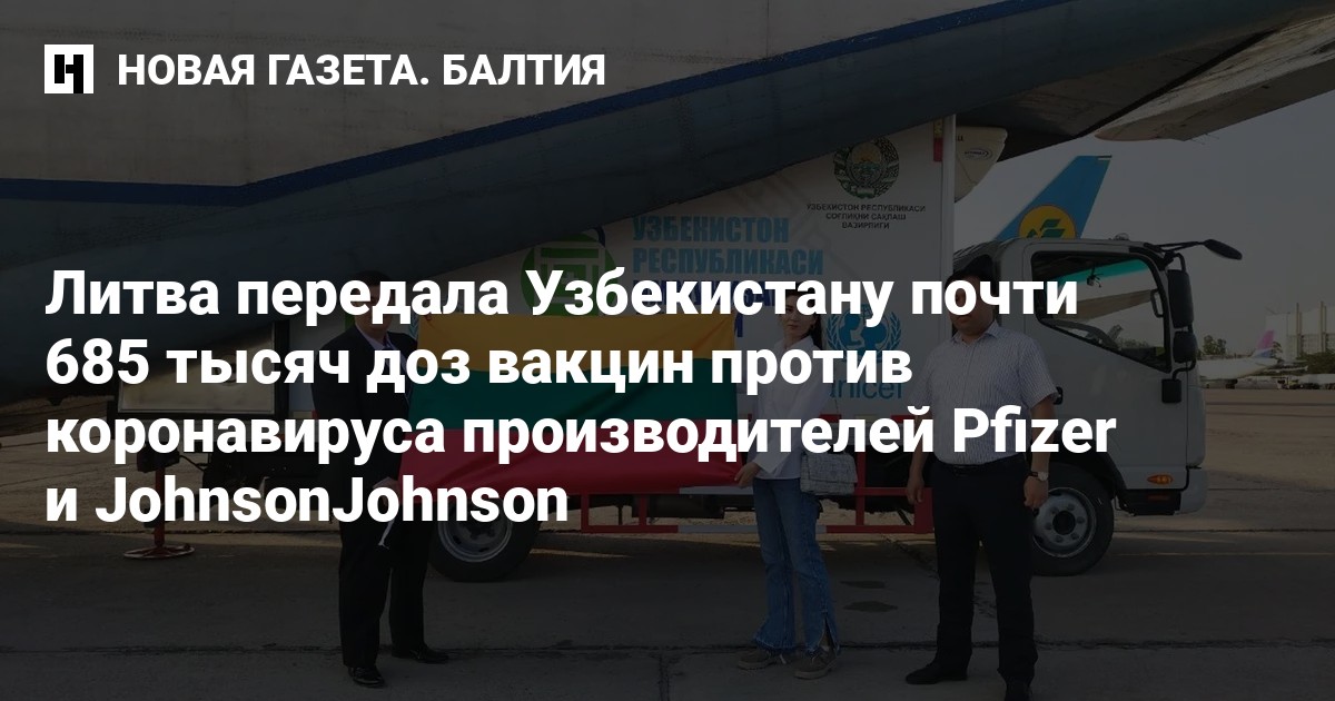 По данным Службы санитарно-эпидемиологического благополучия и общественного здоровья Узбекистана, стоимость груза оценивается в 13 млн евро. Литвы предоставила стране 607 тысяч доз вакцины Pfizer и 77,9 тысяч доз препарата Johnson&Johnson.